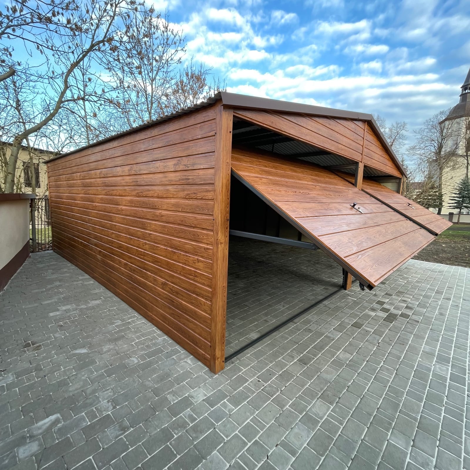 Prémiová plechová garáž premium 6×6 m je oceľová konštrukcia so zvýšenou odolnosťou a zároveň estetickým povrchom. Drevený lichobežníkový plechový povlak vytvára prirodzený drevený efekt, pričom stále poskytuje odpor typický pre kov. Vďaka tomu používateľ získava kombináciu estetiky a funkčnosti, čo sa následne premieta do pohodlia každodenného používania.