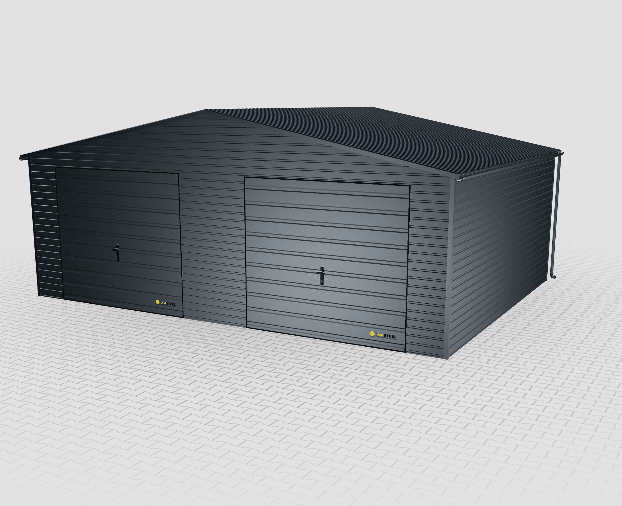 Plechová garáž Premium 7x6 je vyrobená z trapézového plechu v grafitovej farbe RAL 7016. Konštrukcia garáže je založená na pevných oceľových rámoch z dutých profilov a uhlov. Celá konštrukcia je chránená antikoróznym náterom. Sedlová strecha je pokrytá trapézovým plechom v rovnakej farbe. V garáži sú dve krídlové brány s rozmermi 325x205cm vo farbe RAL 7016. Na bránu môžeme dodatočne nainštalovať automatický otvárač. Plechovú garáž je možné použiť aj na uloženie rôznych druhov záhradného náradia. Zmestí sa do nej kosačka na trávu, malý záhradný traktor, zariadenie na pestovanie záhrady. V priestrannej miestnosti je tiež dostatok miesta na umiestnenie pracovného stola. Štandard prémiovej garáže zahŕňa lemovanie. Za príplatok si môžete kúpiť odkvapy a ďalšie príslušenstvo.