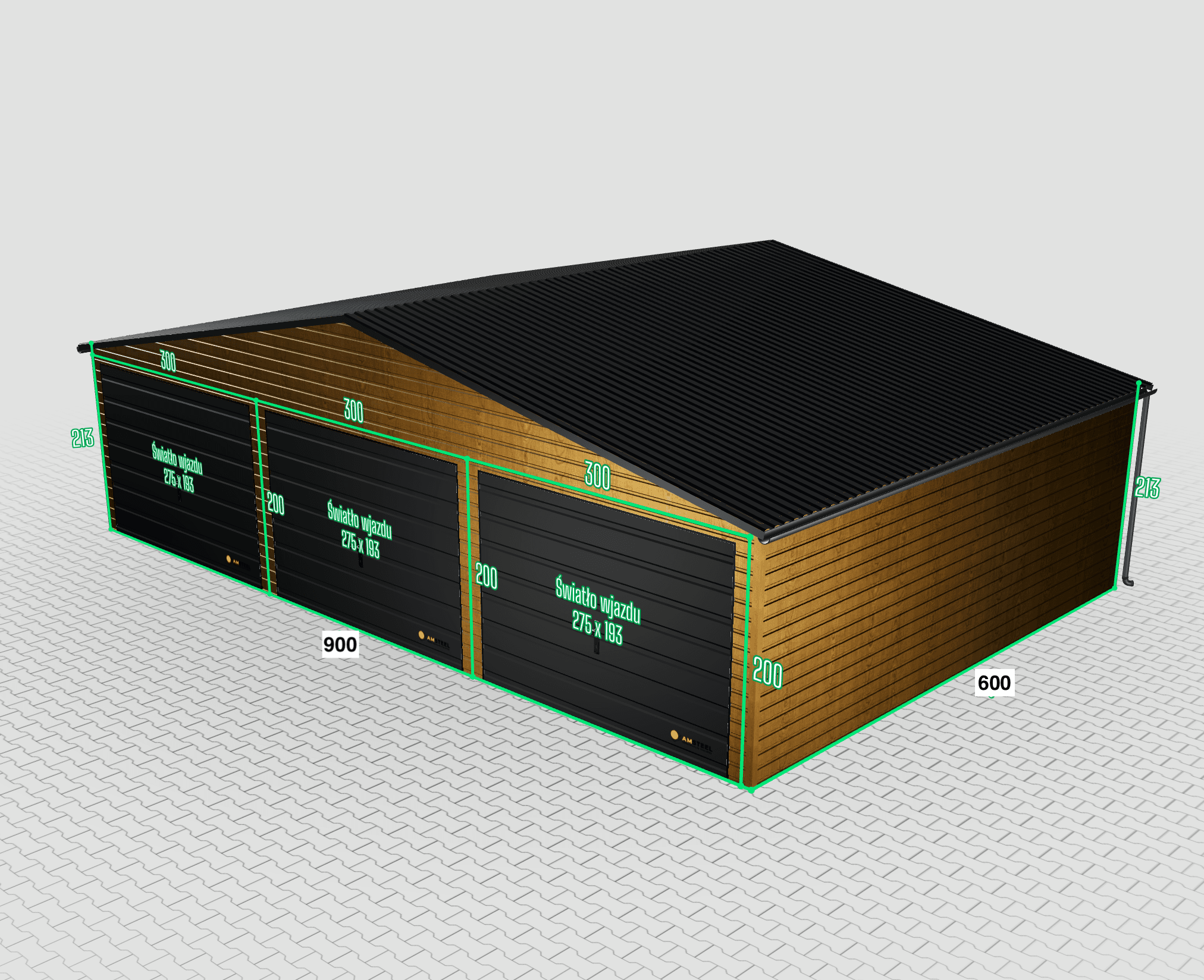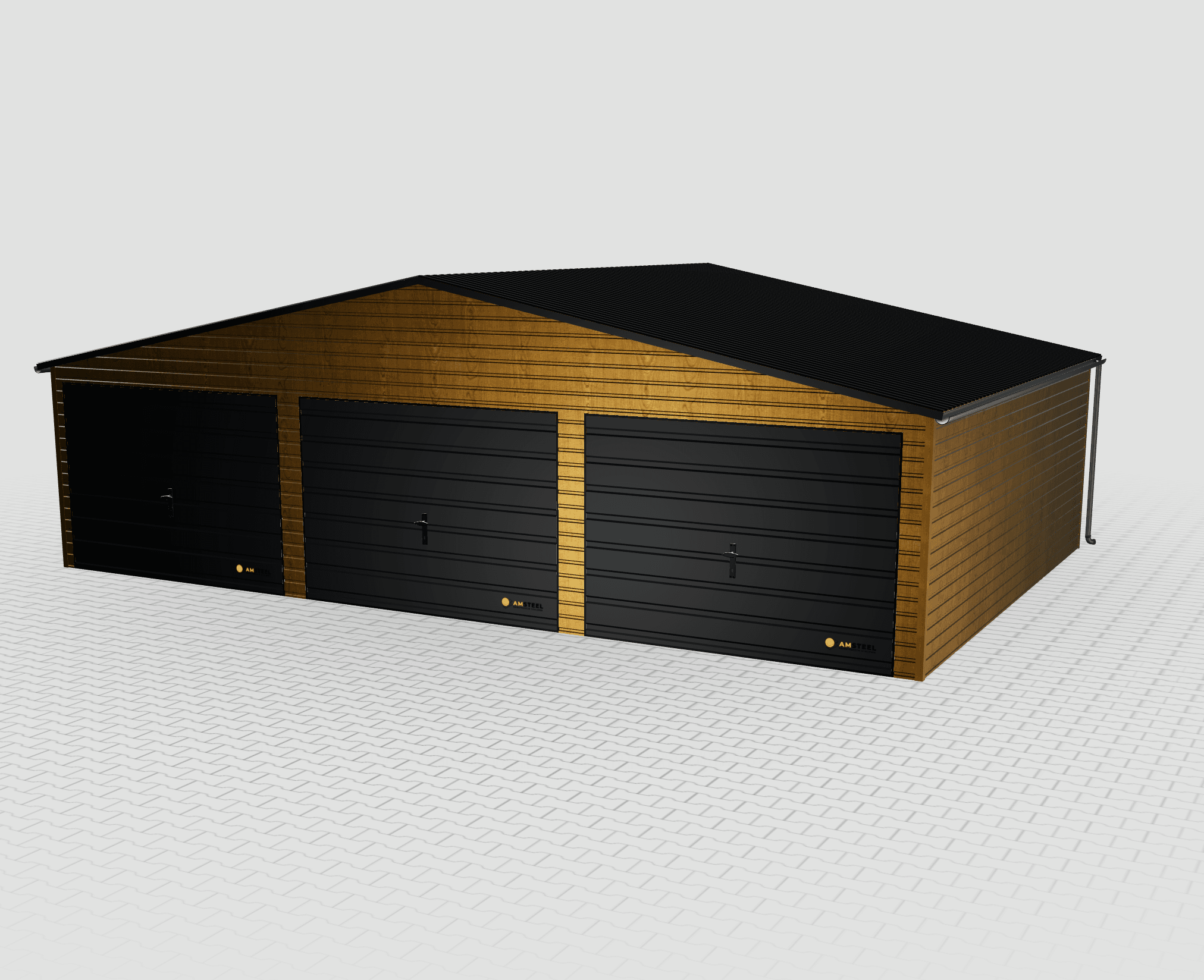 Plechová garáž Premium 9x6 je vyrobená z trapézového plechu v matnej farbe orech. Konštrukcia garáže je založená na pevných oceľových rámoch z dutých profilov a uhlov. Celá konštrukcia je chránená antikoróznym náterom. Strecha je vyrobená v sedlovom systéme, pokrytá trapézovým plechom vo farbe RAL 8017. Poskytuje dobrý odtok vody v prípade silných dažďov. Tri krídlové brány s rozmermi 275x195 cm sú ideálnymi parkovacími miestami pre autá. Pre každú z brán je možné nainštalovať otvárač garáží. Dve plastové okná s rozmermi 80x60cm sú ideálnym osvetlením interiéru v zamračených dňoch. Inštalované bočné dvere s rozmermi 100x190 cm navyše uľahčia vstup bez nutnosti otvárania brány. Prémiovú plechovú garáž je možné použiť aj na uskladnenie rôznych druhov záhradného náradia. Zmestí sa do nej kosačka na trávu, malý záhradný traktor, zariadenie na pestovanie záhrady. V priestrannej miestnosti je tiež dostatok miesta na umiestnenie pracovného stola.