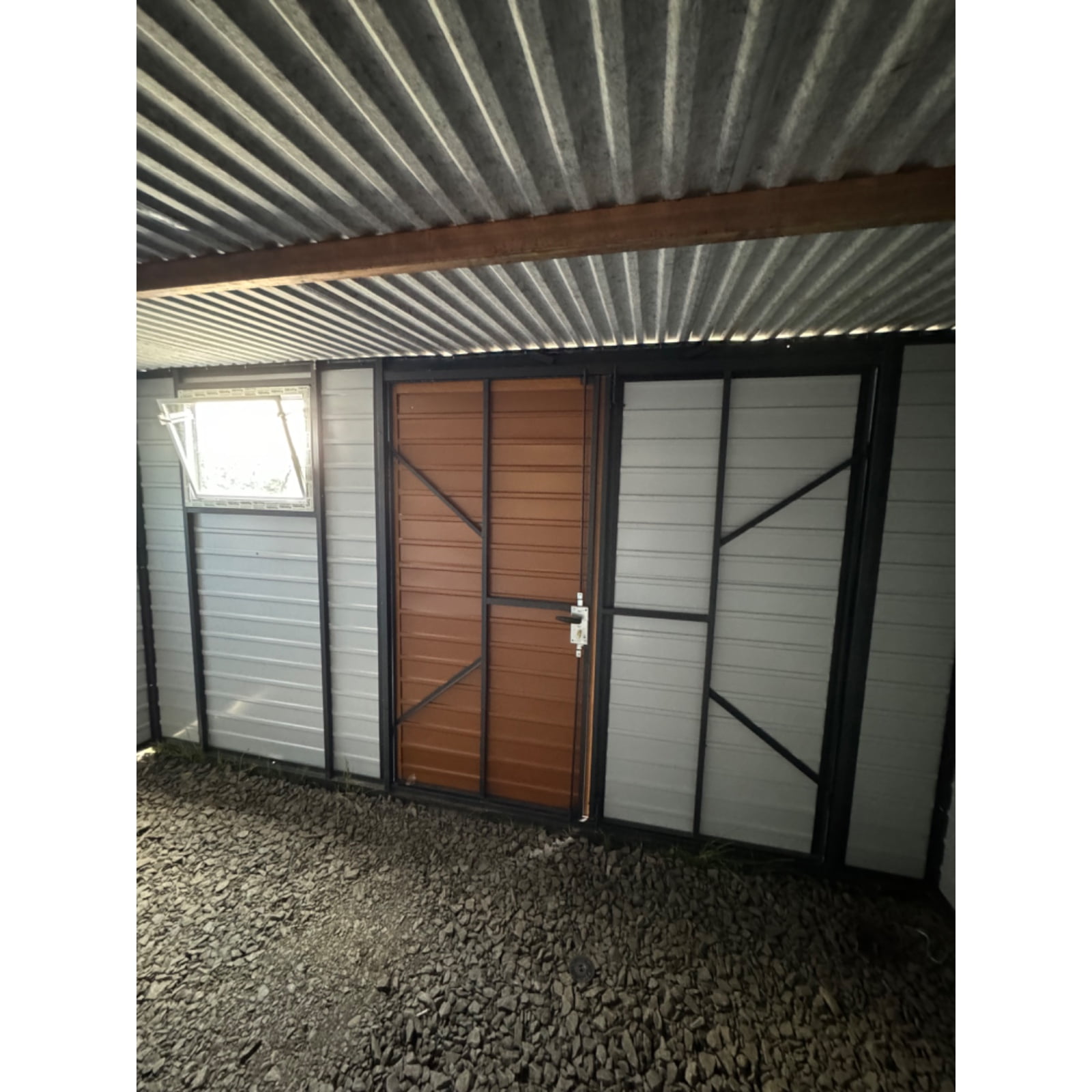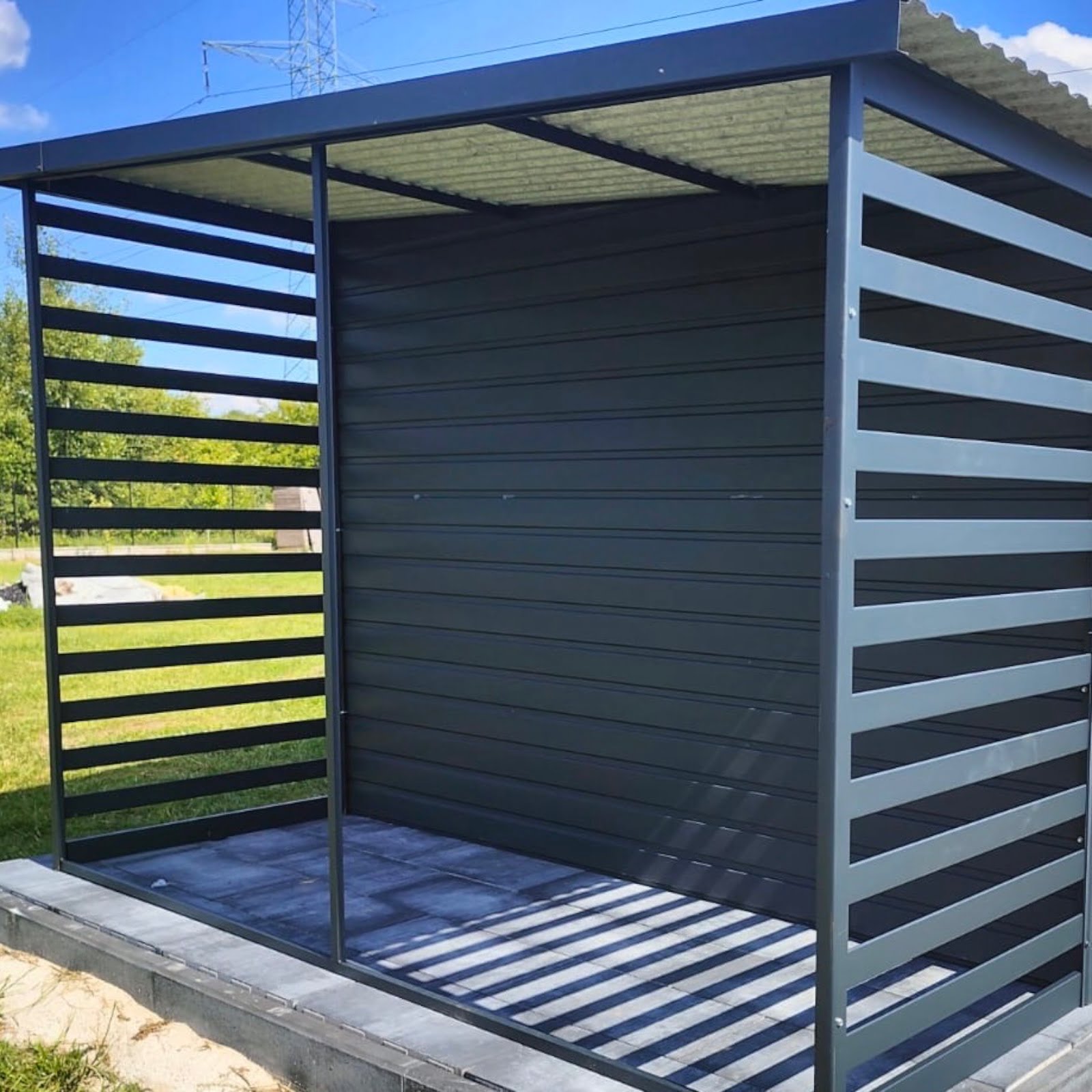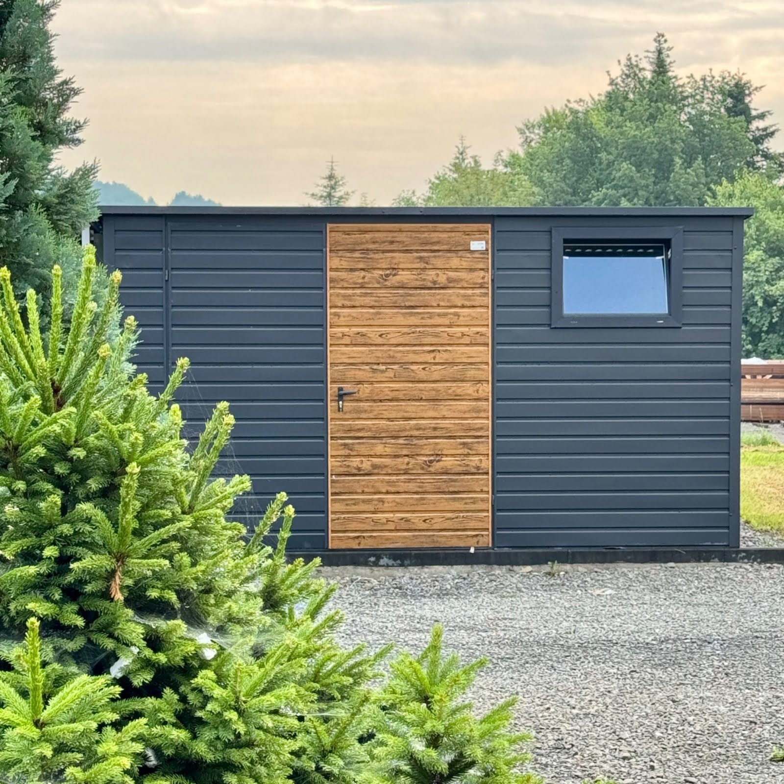 Záhradný domček 4x4m z trapézového plechu pozinkovaný v čiernej farbe. Strecha konštrukcie je jednostranná do zadnej časti domu pokrytá trapézovým plechom. To je veľká výhoda v prípade silného dažďa alebo sneženia. Záhradný domček je navyše vybavený plastovým oknom s rozmermi 80x60. Zaisťuje veľmi dobré denné osvetlenie miestnosti v zamračených dňoch. Je ideálny na uloženie záhradného náradia, ako je kosačka na trávu, fúrik, záhradný nábytok alebo gril či bazén. Dá sa použiť aj ako úložný priestor na pneumatiky alebo bicykle. Kvalitná antikorózna farba poskytne ochranu pred hrdzavením kovových profilov po mnoho rokov. Záhradný domček ochráni všetky predmety v ňom uložené pred nepriaznivými poveternostnými podmienkami v lete aj v zime. Dvojkrídlové vchodové dvere zo zlatého dubu sú zamknuté a ochránia pred neželanými hosťami. Vo vnútri miestnosti môžeme police umiestniť podľa nášho vkusu a veľkostí. Zvyšný priestor je možné využiť s pracovným stolom pre domácich majstrov. Výhody záhradného domčeka sú predovšetkým: